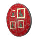 Christmas design with snowflakes and Christmas tree decoration in rectangles on red background