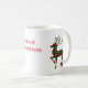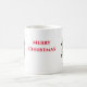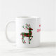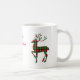 Christmas coffee mug is shown here in White with text of Merry Christmas and a print of plaid deer.