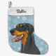 Happy doberman stocking, easily customised with your own dog's name! This version comes with natural floppy ears.