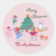 Merry Christmas Dog Ice Skating Name Blush Pink Classic Round Sticker