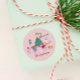 The sticker's blush pink background provides a warm and festive setting, perfectly complementing the cheerful "Merry Christmas" title. Personalise it with your family name to make it uniquely yours, adding a special touch to gift wrapping, cards, or party favours. Perfect for dog lovers and those who adore whimsical holiday details, this customisable sticker is a sweet way to spread festive cheer!