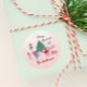 Merry Christmas Dog Ice Skating Name Pink Gift Classic Round Sticker