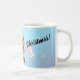Adorable, Donner the Reindeer is holding a red and white diagonally striped pole, like a candy cane, with a flag on the end that says Donner. The background is a pretty sky blue with snowflakes falling and it reads "Merry Christmas" on either side of Donner. This would be the perfect hot cocoa mug for a child for Christmas! There's one for every reindeer too, so purchase a set if you want! Enough for everyone.