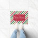 Merry Christmas illustration with text and snowflakes design on red, white and green striped background