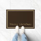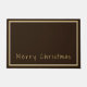Doormat shown with a chocolate brown background, silver-coloured and gold-coloured borders surrounding the doormat and phrase of "Merry Christmas" in a upbeat text in gold-coloured near bottom of doormat.