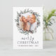 Rustic Winter Merry Christmas Photo Card with Holiday Dusty Blue, Green and Brown Greenery, Pine Tree Branches, Pinecones and simple Background.