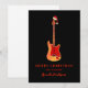 A cool stylish musical way to rock Christmas with this flame electric guitar wearing a Santa hat simple illustration with stylish typography script on a black background . This music themed minimalist merry christmas greetings card is perfect for musicians, guitarists and budding rockstars, the typography script design is easy to personalise using the template. Funny Santa Musical instrument original artwork by Catherine Sweetman
