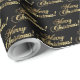 Merry Christmas Elegant Faux Gold Foil Script Golden Text Pattern on Black Background Holiday Season Gift Wrapping Paper, you can add name or text