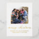 Merry Christmas Elegant Gold Calligraphy Two Photo Foil Holiday Postcard