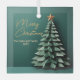 Gorgeous gold script on an elegant green Christmas tree ornament that gives the unique illusion of looking 3D complete with a pretty star at the top on this custom holiday party gift. A modern handwritten scrawl above your personalised message for trendy keepsake.