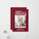 Send warm wishes in style with this modern and elegant Merry Christmas photo card in a beautiful red design. Featuring a bold serif font with swirled script details and a patterned background, this holiday card is both classic and contemporary. Personalise with your favourite photo and family name for a truly meaningful greeting.