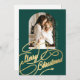 Elegant stylish Merry Christmas faux gold classic calligraphy script family photo green holiday card with your custom personalised text on both sides. +++++++++ PLEASE NOTE that the background colour is editable. You can change it after selecting CUSTOMIZE option down below the PERSONALIZE IT menu. If you don't feel at ease changing it, please ask Zazzle Live Design Service or the designer for help.