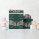 Modern Christmas gift wrapping paper featuring elegant winter greenery and holly berries on a dark green background. The traditional greeting "Merry Christmas" appears in classy handwritten style typography. Personalise this lovely holiday wrapping paper with your name.