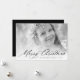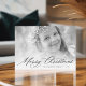 Elegant and simple holiday photo card features your favorite horizontal or landscape oriented photo in full bleed, with "Merry Christmas" overlaid in classic black calligraphy script lettering. Personalize the front of the card with your names or a short holiday message, and the year. NOTE: This card is designed to convert your photos to black and white. To revert to color, select "click here to customize further" beneath the text and image templates, and remove the Black & White filter.
