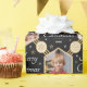Make your holiday gifts extra special with custom photo wrapping paper! This editable template is personalised with four of your favourite photos, and the recipient's name, your family name, or the holiday year. It features hexagonal picture frames, set against a festive background of snowflakes and stars, along with the phrase "Merry Christmas". A stylish design pairing traditional typography with a classic geometric design. Perfect for photos of kids, family, friends, and pets! This seamless pattern gift wrap is available with a matte or glossy finish. Printed colours: black, white, and a gold colour.