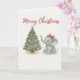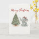 Front: baby elephant with red bow beside decorated Christmas tree, “Merry Christmas” text