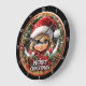 Merry Christmas Elf Child Wreath Large Clock