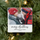 Merry Christmas Family/Couple's Names 2-Photo Ceramic Ornament