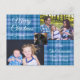 Merry Christmas Family Photo Blue Plaid Postcard