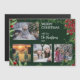 Family photo collage Merry Christmas, winter leaves, magnetic card.