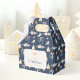 Add holiday charm to your gift-giving with this elegant Christmas favour box. Featuring a festive navy background with watercolor candles, stars, wreaths, and a golden bow, it’s perfect for cookies, treats, or small holiday gifts. Personalised with your family name, this box makes celebrations even more special.