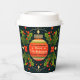 Merry Christmas Festive Bauble Floral Holly Coffee Paper Cups features an elegant floral design with a Christmas bauble in the centre with the text "Merry Christmas" in gold script. Perfect for Christmas party celebrations. Designed by Evco Holidays www.zazzle.com/store/evcoholidays