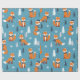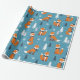 Wrap your holiday gifts with this Christmas wrapping paper featuring cute fox with hat, snowflakes and fir tree on blue background. Your presents will look extra jolly under the Christmas tree.