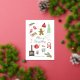 Beautiful holiday card with beautiful Christmas watercolor hand-drawn illustrations, gingerbread cookies, a pine tree, cosy elements such as a hot cocoa cup, warm mittens, hat and scarf, teapot, snowflakes, wood sled, Christmas foliage, Christmas presents, candy canes and more