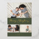 Featuring modern brush script with 3 of your photos. Comes with a photo on the back as well.