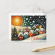 Merry Christmas Folk Art Village, Christmas Tree Holiday Postcard