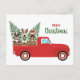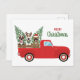 Merry Christmas French Bulldogs Red Pickup Truck Holiday Postcard