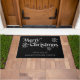 Modern Merry Christmas Doormat with stylish typography and snowflakes. The template is set up for you to add your home or business address. Design has a colour palette of black and grey.