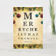 Vintage style Christmas greeting card in eye chart format with holly border.