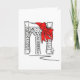 Features an original pen-and-ink illustration of a New York City landmark, the Brooklyn Bridge, "dressed up" for the holiday season with a big red bow. Perfect for Christmas!