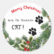 Christmas greetings from the Cat sticker/envelope seal for holiday correspondence, gift giving, cards and more. Features cute paw prints and greenery wreath on the classic round sticker. Can be edited to read Happy Holidays, or Season's Greetings.