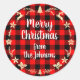 Merry Christmas From Name Gold Buffalo Plaid REd Classic Round Sticker