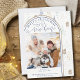 Merry Christmas from our New Home photo holiday moving announcement card. The design features handwritten script calligraphy and a doodle sketched pattern of christmas trees and houses in blue green natural beige. Photo template is ready for you to add your picture, which is displayed in square format and you can edit the wording to make it suitable for singles, couples and families. This photo Christmas Card from your new house is an elegant 2-in-1 choice to say happy holidays and let everyone know your new address at the same time.