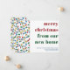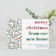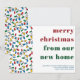 Colourful Holiday moving announcement card with christmas string light bulbs in red, green, blue and yellow. "merry christmas from our new home" is lettered in big and bold modern typography and the design can be edited for a single person of a family. You can also add your new address and your name(s). A merry and bright design to let everyone know your new address.