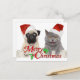 Holiday greetings from cute pet dog and cat in Santa hats.