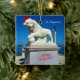 Merry Christmas from St. Augustine! Share a little sunshine with this unique Florida-themed Christmas Ornament that features the photo image of one of two gallant white marble lions that stand guard over the entrance to the Bridge of Lions which connects downtown "Old City" Saint Augustine with Anastasia Island. The large Carrera marble lions are named “Firm” and “Faithful,” and were originally commissioned by Italian sculptor F. Romanelli in 1927, and later restored. The background features a stunning azure blue sky and numerous sailboats and watercraft anchored in Matanzas Bay, which is part of the Intracoastal Waterway. The back of the holiday Ornament is identical to the front. Use the Ceramic Ornament on Christmas trees, wreaths, garland, as package ties, stocking stuffers, favor bags, or gifts for teachers, hostess, neighbors, coworkers, and much more! Photography and design by Glenda Motsavage, a Florida-based travel writer and author.