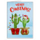 Cactuses celebrating Christmas with decorating themselves in glowing Christmas lights. A hi five for holiday cheer.