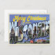 Merry Christmas from Wisconsin adapted from a vintage Wisconsin postcard with the letters filled with historic scenes from the state.