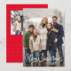 Merry Christmas fun script simple red two photo Holiday Card