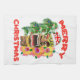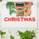 Aloha! Add some tropical style to your Christmas celebrations with this Hawaiian Tiki with a Santa Hat on, and some tropical hibiscus flowers and Christmas decorated palm trees.