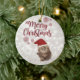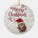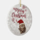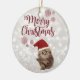 Merry Christmas,Glittery Bokeh,Cat With Santa Hat Ceramic Ornament
