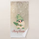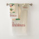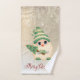 Merry Christmas, a gnome with pine tree, and snowflakes make this perfect Christmas bath towels for friends and family.