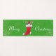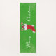 This yoga mat is green with a scattering of pale snowflakes and a red and white Christmas stocking that has a gnome wearing a red pointy hat between two candy canes and clusters of holly leaves. Customise the Merry Christmas text with the templates.