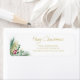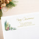 This stylish Christmas return address label is decorated with watercolor foliage and berries in red, green, and gold.