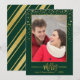 Merry Christmas Gold Confetti Holiday Photo-Green Card