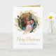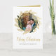 Merry Christmas Gold Holly Berry Wreath Photo Card